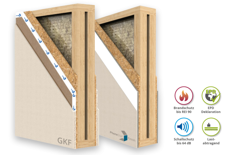 höhere Schalldämmmaße, schlankere Bauteile, weniger Materialverbrauch und ein spürbarer Gewinn an Wohnfläche- bei gleichzeitig schneller Montage im Holzbau